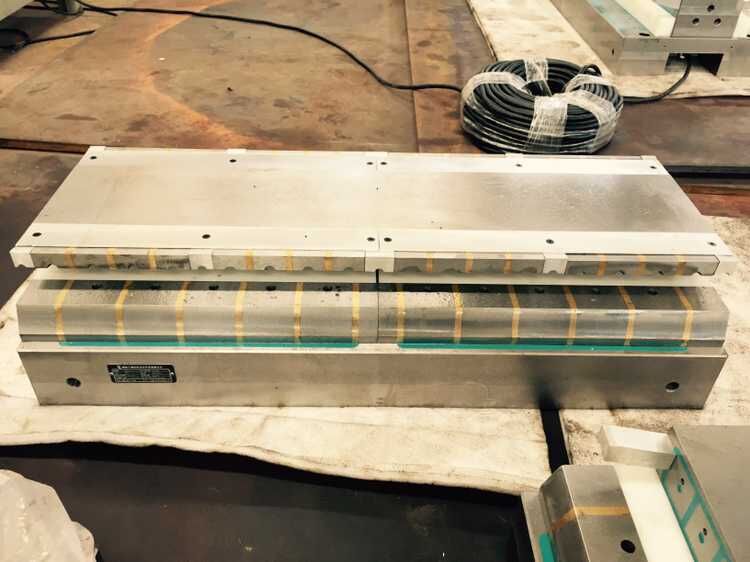 根據(jù)客戶要求,多臺吸盤組合對各種軌道進行加工,專業(yè)的控制系統(tǒng)可以通過操作臺按鈕對所有吸盤進行統(tǒng)一充退磁控制或分區(qū)充退磁控制。將鐵軌底面放在吸盤磁極面上,側(cè)面靠住吸盤側(cè)面磁極,按充磁按鈕即可固定鐵軌,然后對鐵軌進行加工。