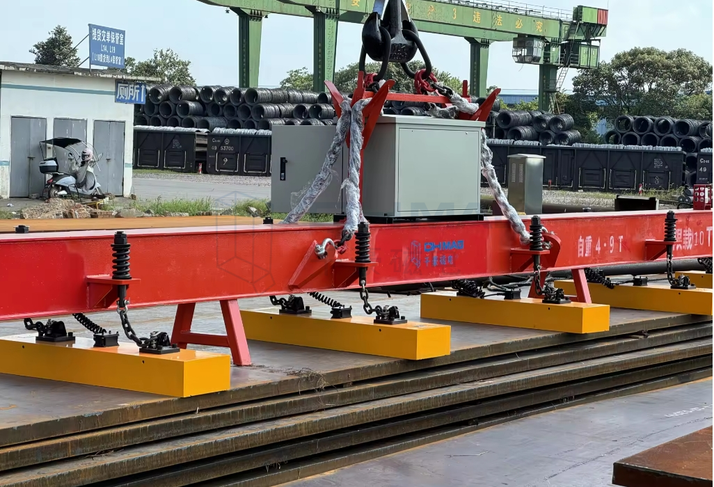 準備階段:確認電源連接正常,吊具無異物附著。將吊具放置于待吊鋼板上方,確保磁力面與鋼板緊密接觸。