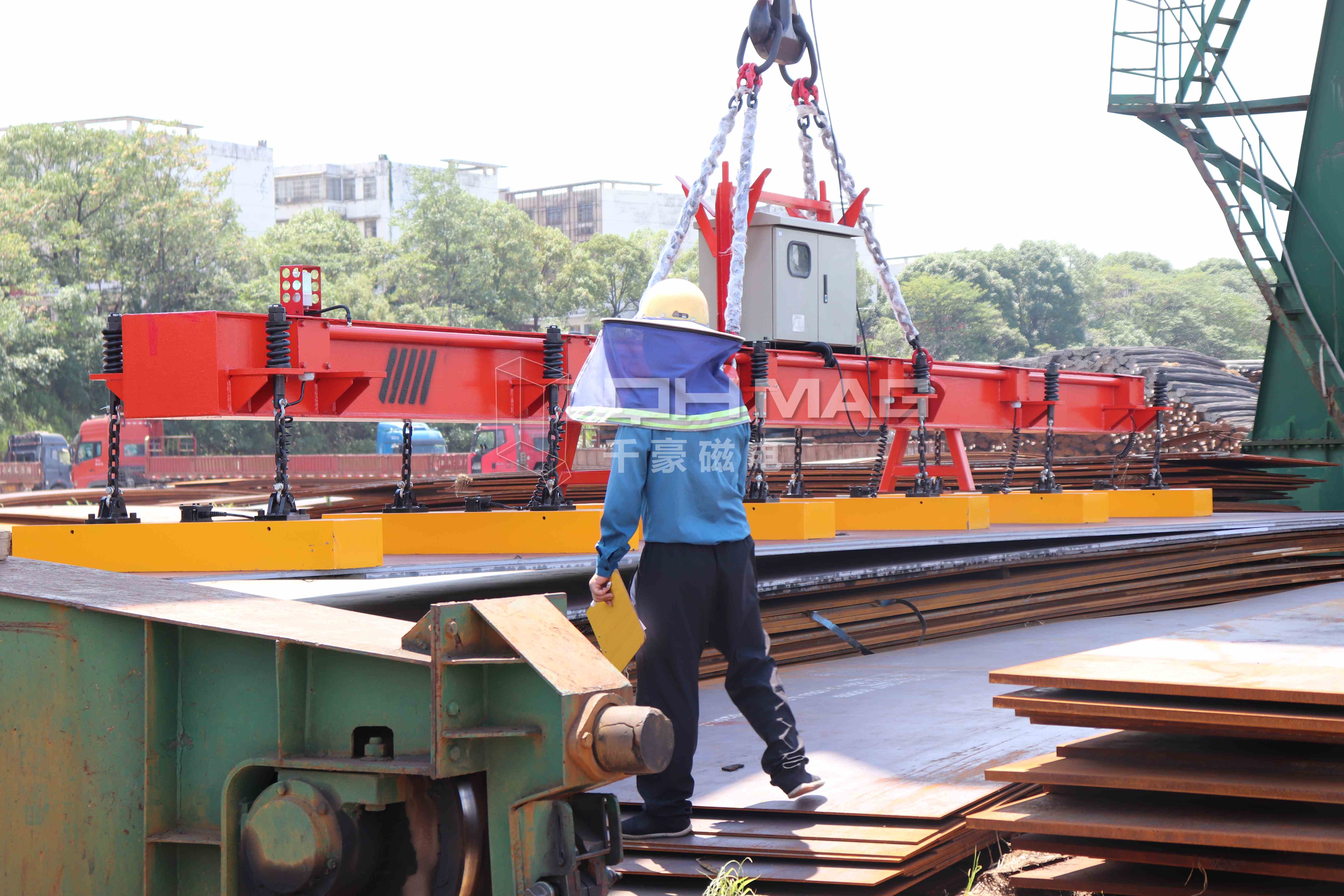 千豪磁電鋼板電永磁吊具,以其高效、安全、靈活的操作流程,為鋼板卸貨作業(yè)帶來全新體驗。