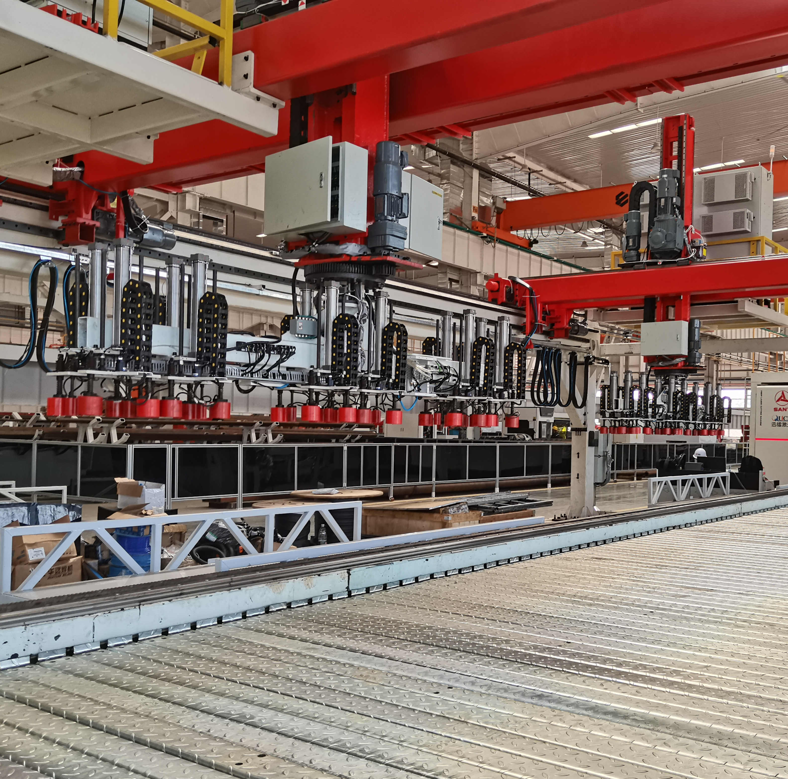 工業(yè)桁架機(jī)器人的應(yīng)用使工人在規(guī)模化生產(chǎn)過程中擺脫了單調(diào)重復(fù)的體力勞動(dòng),改善了工作環(huán)境,同時(shí)提高了產(chǎn)品質(zhì)量,因此成為了企業(yè)自動(dòng)化改造的必然選擇。桁架式工業(yè)機(jī)器人以其高可靠性、高速度、大負(fù)載、大行程、低成本等特點(diǎn),在物料搬運(yùn)傳輸領(lǐng)域有著獨(dú)特的優(yōu)勢(shì),應(yīng)用前景十分廣闊。傳統(tǒng)鋼結(jié)構(gòu)車間采用激光切割機(jī)切割鋼板,鋼板以人工分揀為主,工人勞動(dòng)強(qiáng)度大,生產(chǎn)效率低,工作環(huán)境惡劣。因此千豪為鋼板自動(dòng)化分揀機(jī)器人安裝電永磁鐵,用于代替人工實(shí)現(xiàn)鋼板的自動(dòng)分揀