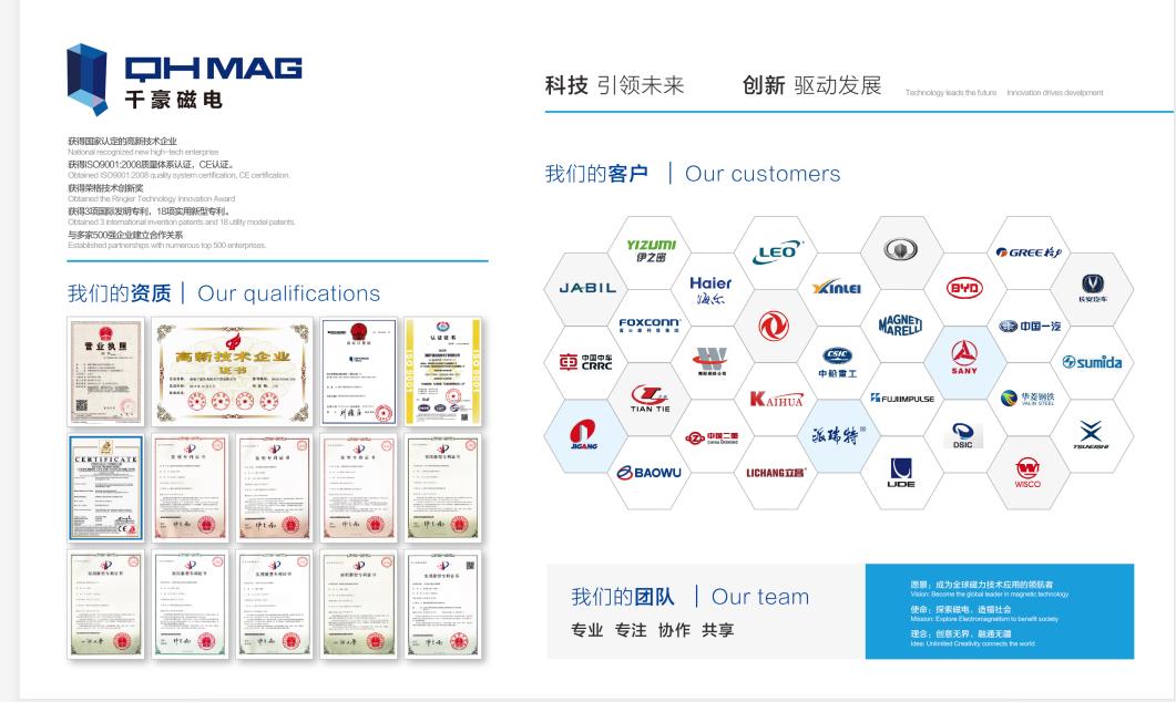 在電磁鐵轉(zhuǎn)型電永磁鐵上,千豪磁電吸取了許多老一輩電磁鐵人的經(jīng)驗(yàn)與指導(dǎo),第一臺(tái)電永磁鐵的誕生離不開(kāi)千千萬(wàn)萬(wàn)電磁鐵人的付出,也離不開(kāi)那些堅(jiān)持不懈的研發(fā)技術(shù)團(tuán)隊(duì)。